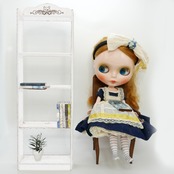 スリム ラック 彫刻② Mサイズ 白 ホワイト 本棚 シェルフ ネコ ねこ 猫 彫刻 ウォールナット色 1/6 ドールハウス ミニチュア ハンドメイド 木製 家具
