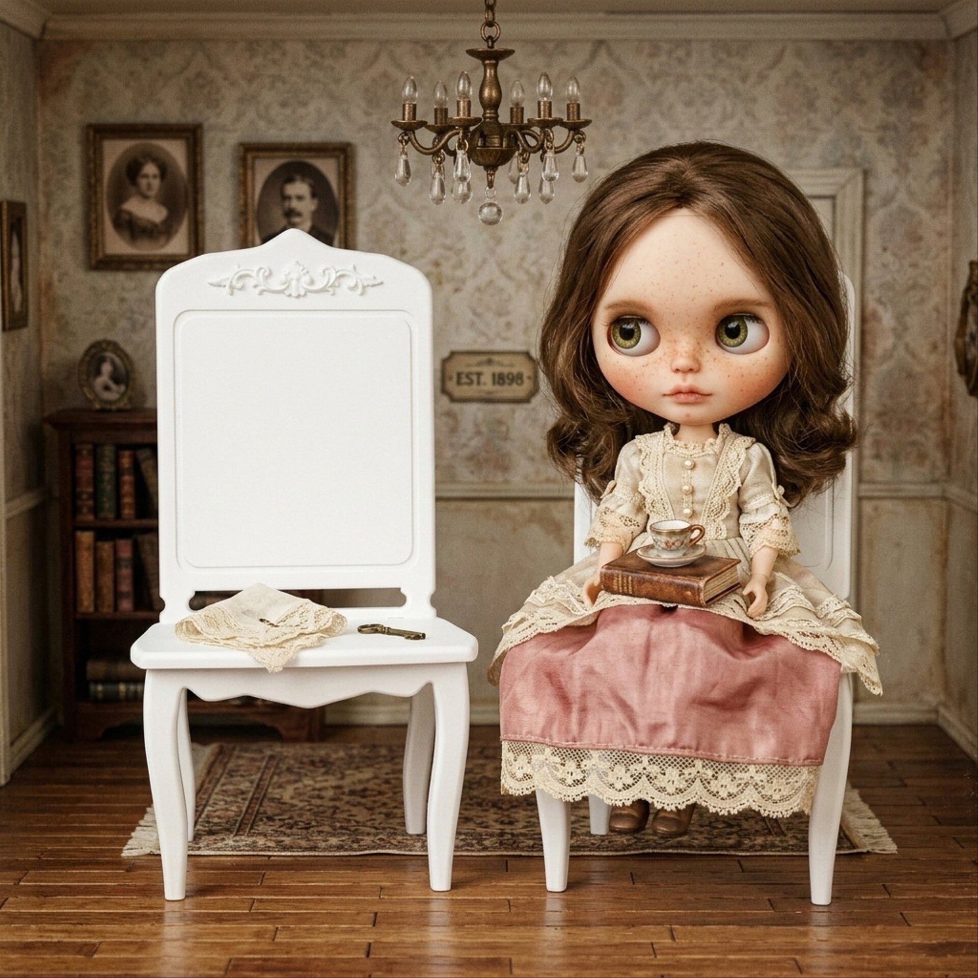 ダイニングチェア 椅子 chair ホワイト 1/6 ドールハウス ミニチュア ハンドメイド アンティーク 家具 ドール miniature dollhouse