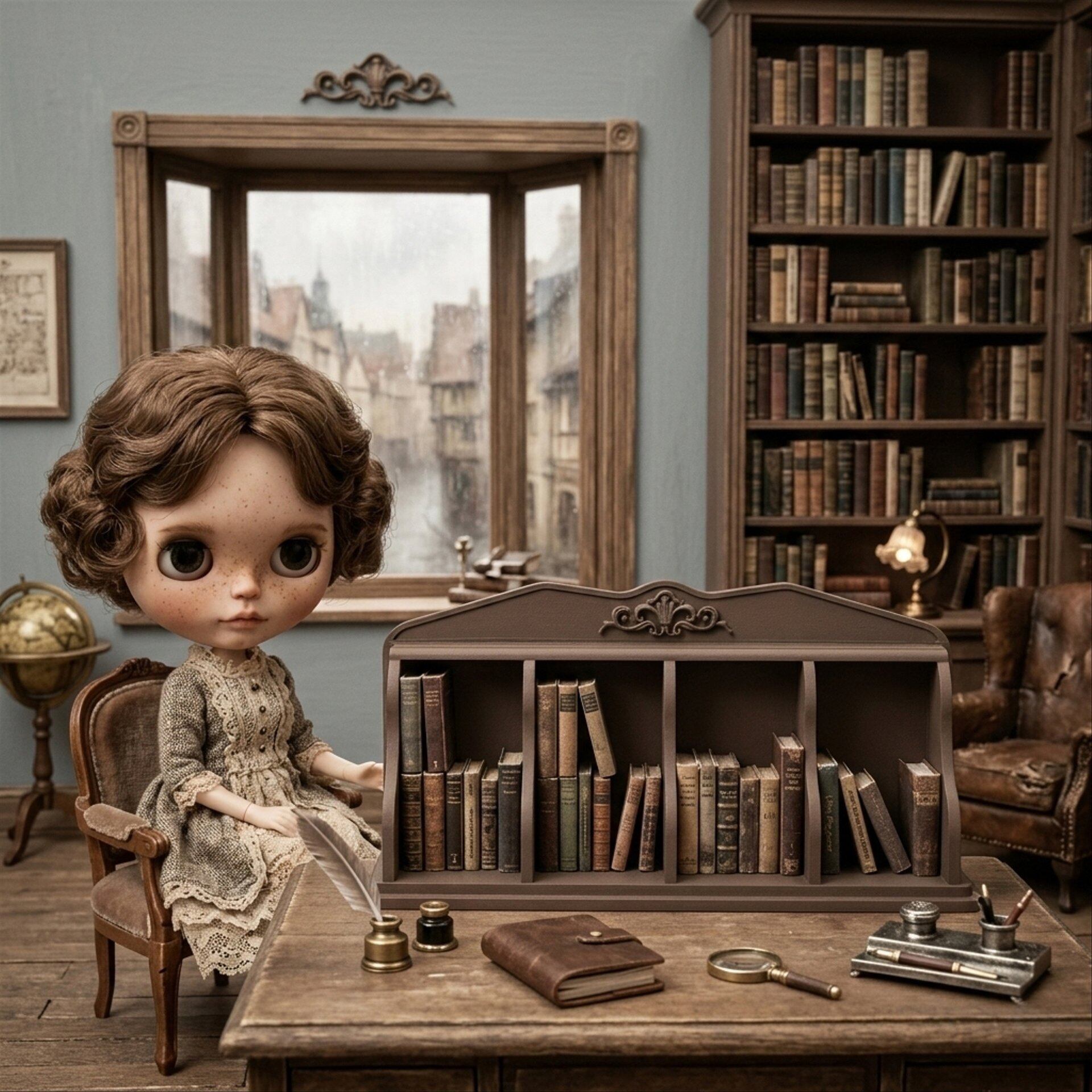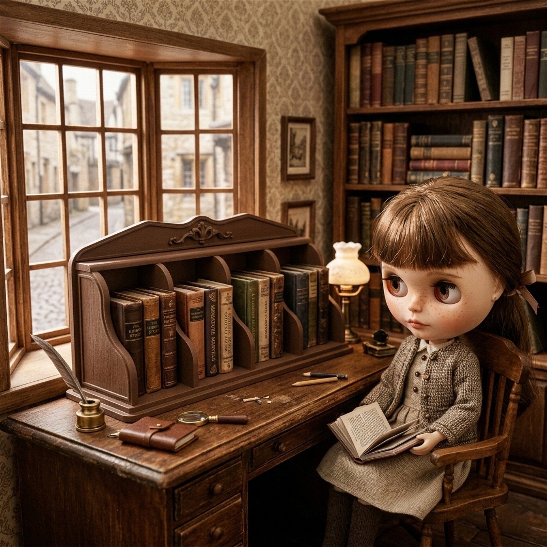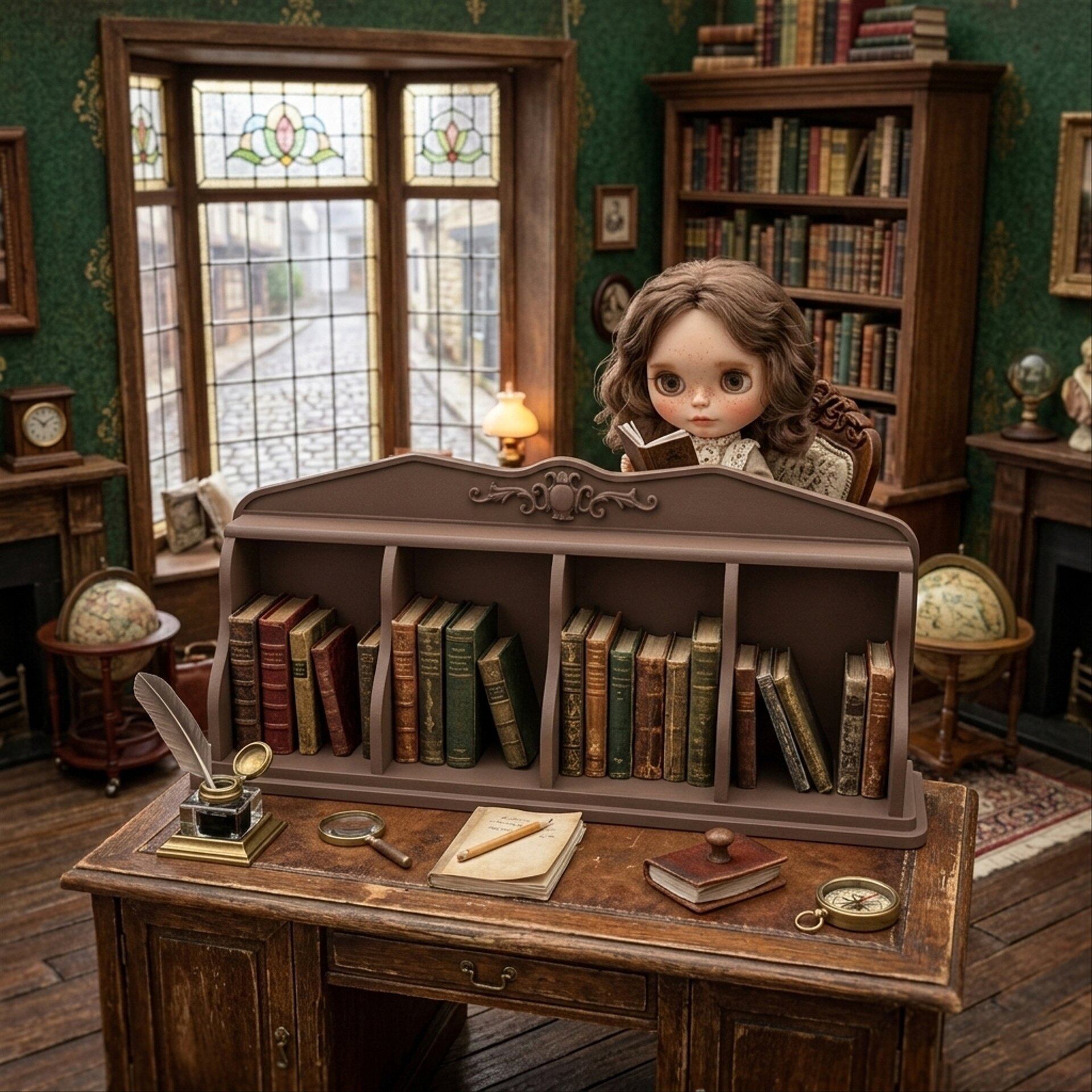 ブックスタンド 卓上本棚 ブラウン 茶 1/6 ドールハウス ミニチュア 豆本 小物入れ 飾り ミニチュア ハンドメイド アンティーク 家具 ドール dollhouse miniature