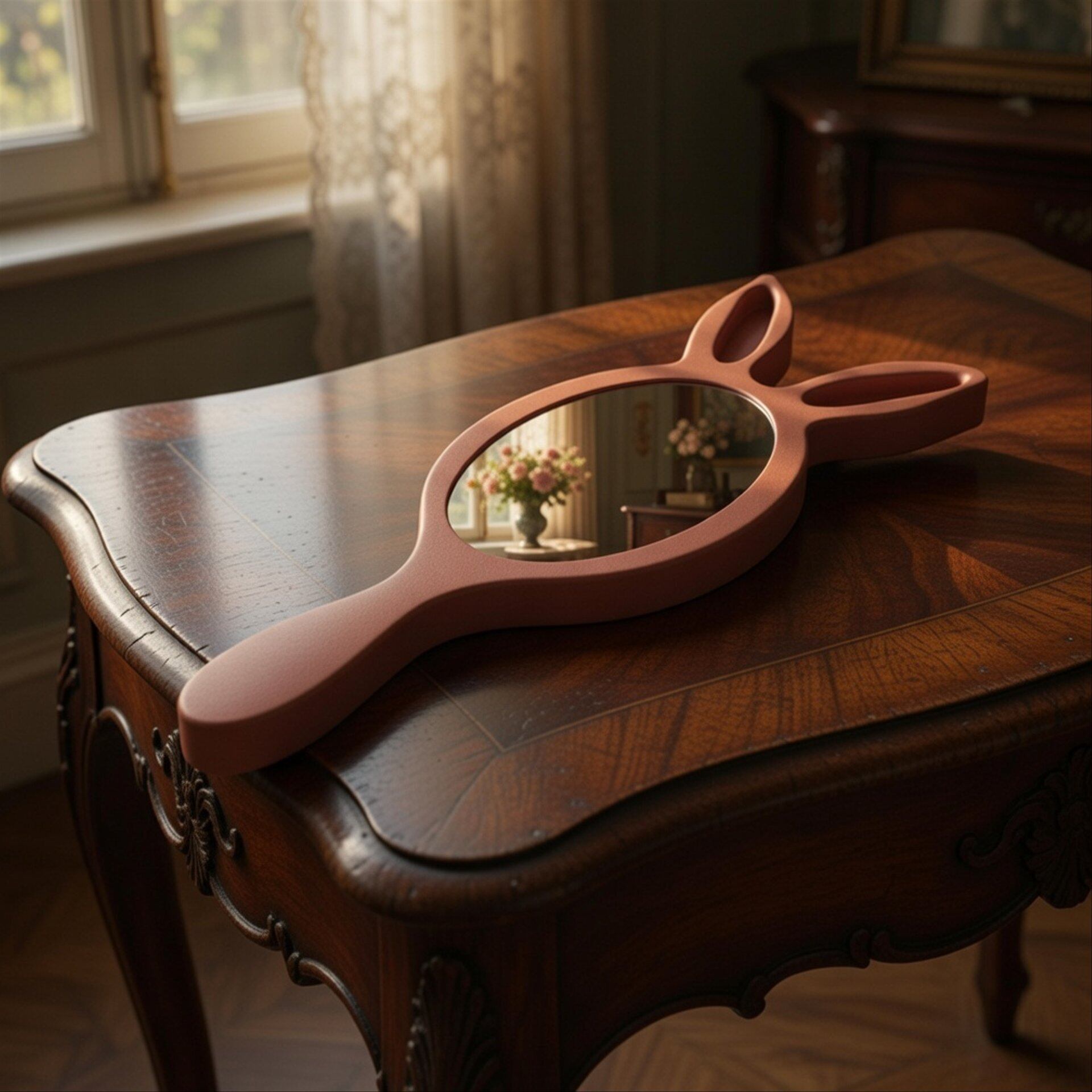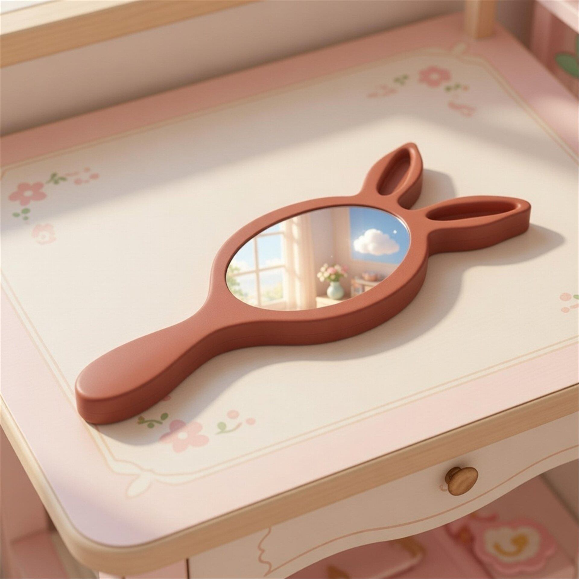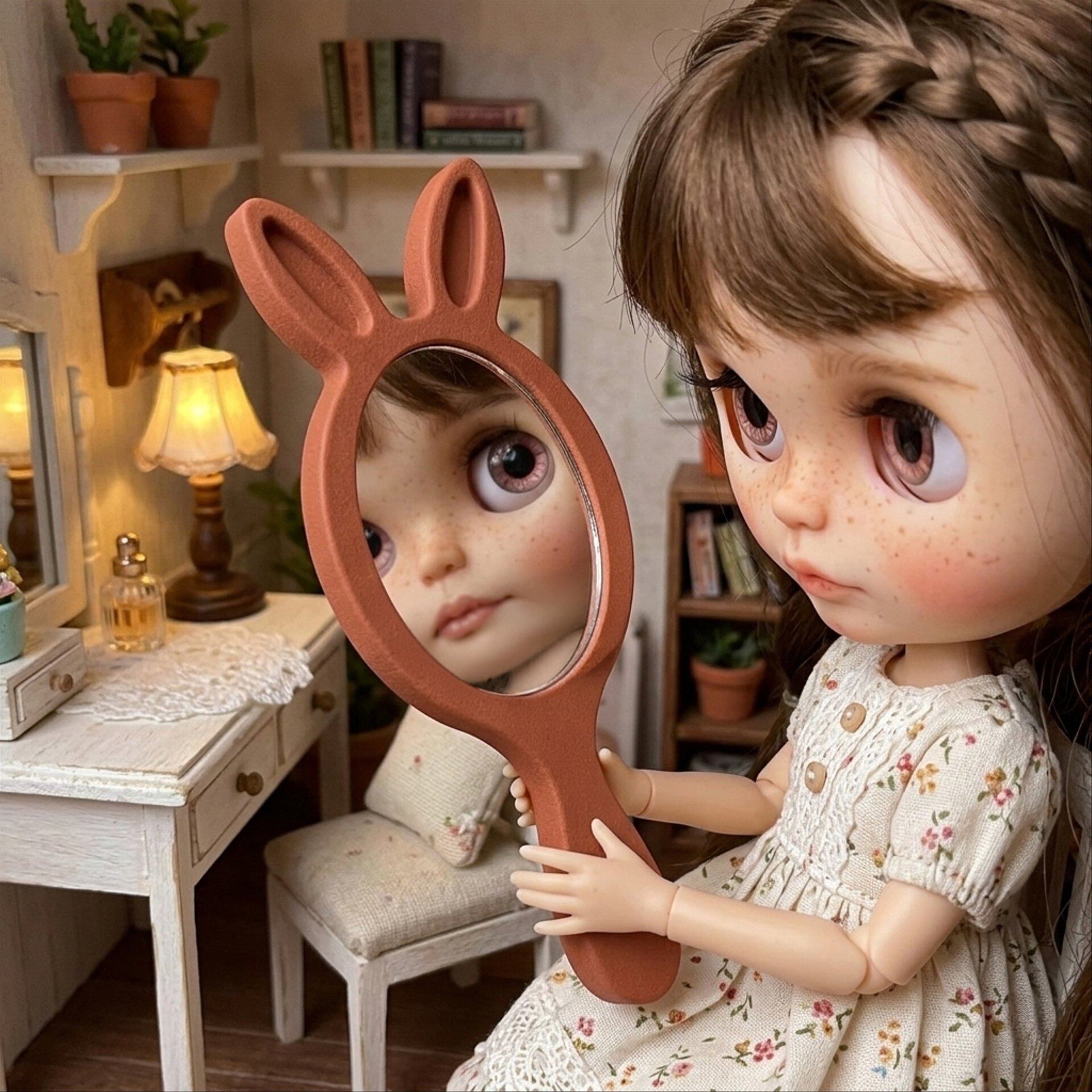 ラビットミラー テラコッタ 1/6 ドールハウス バニーミラー うさぎ ウサギ 兎 手鏡 ミニチュア 日本製 ハンドメイド アンティーク 家具 ドール dollhouse miniature