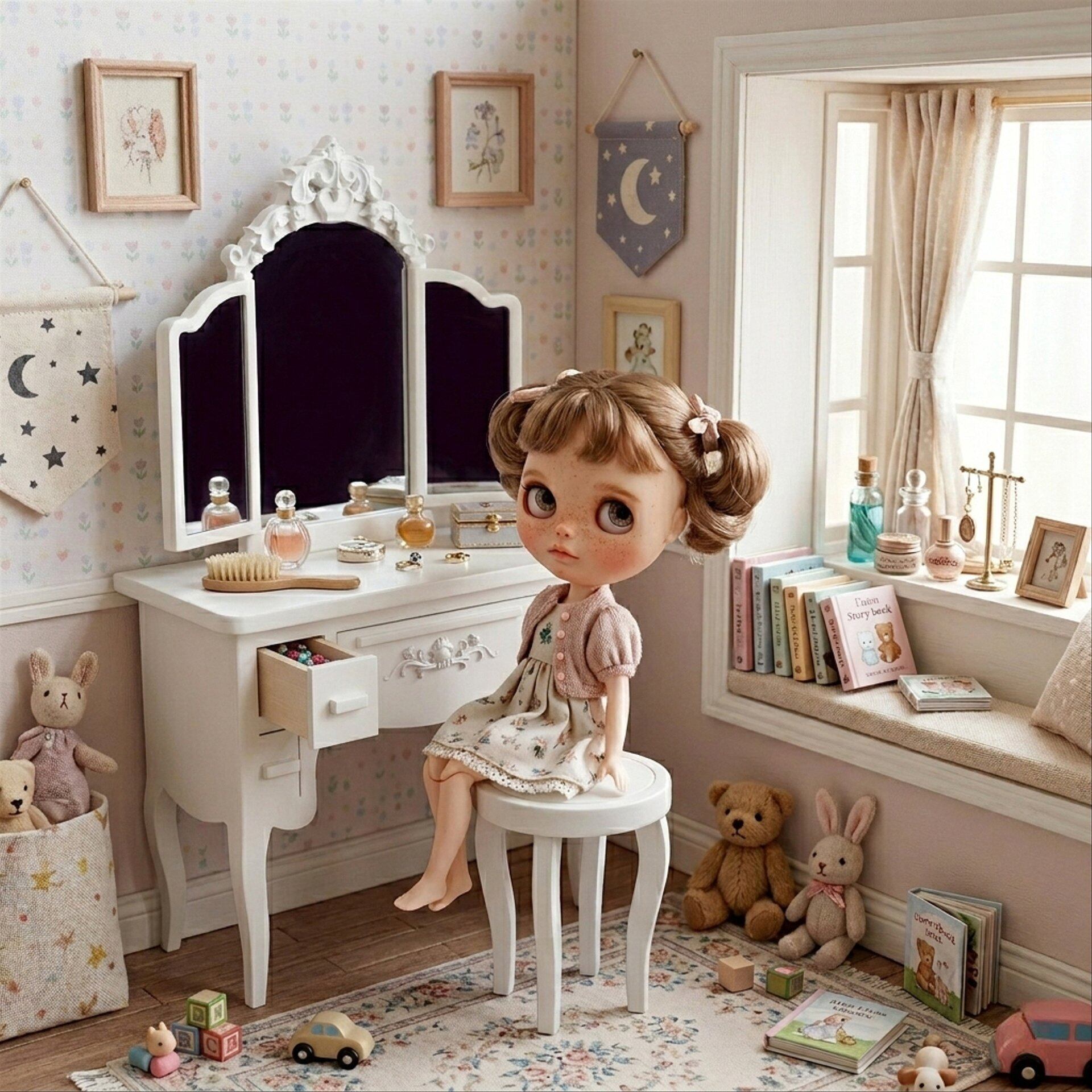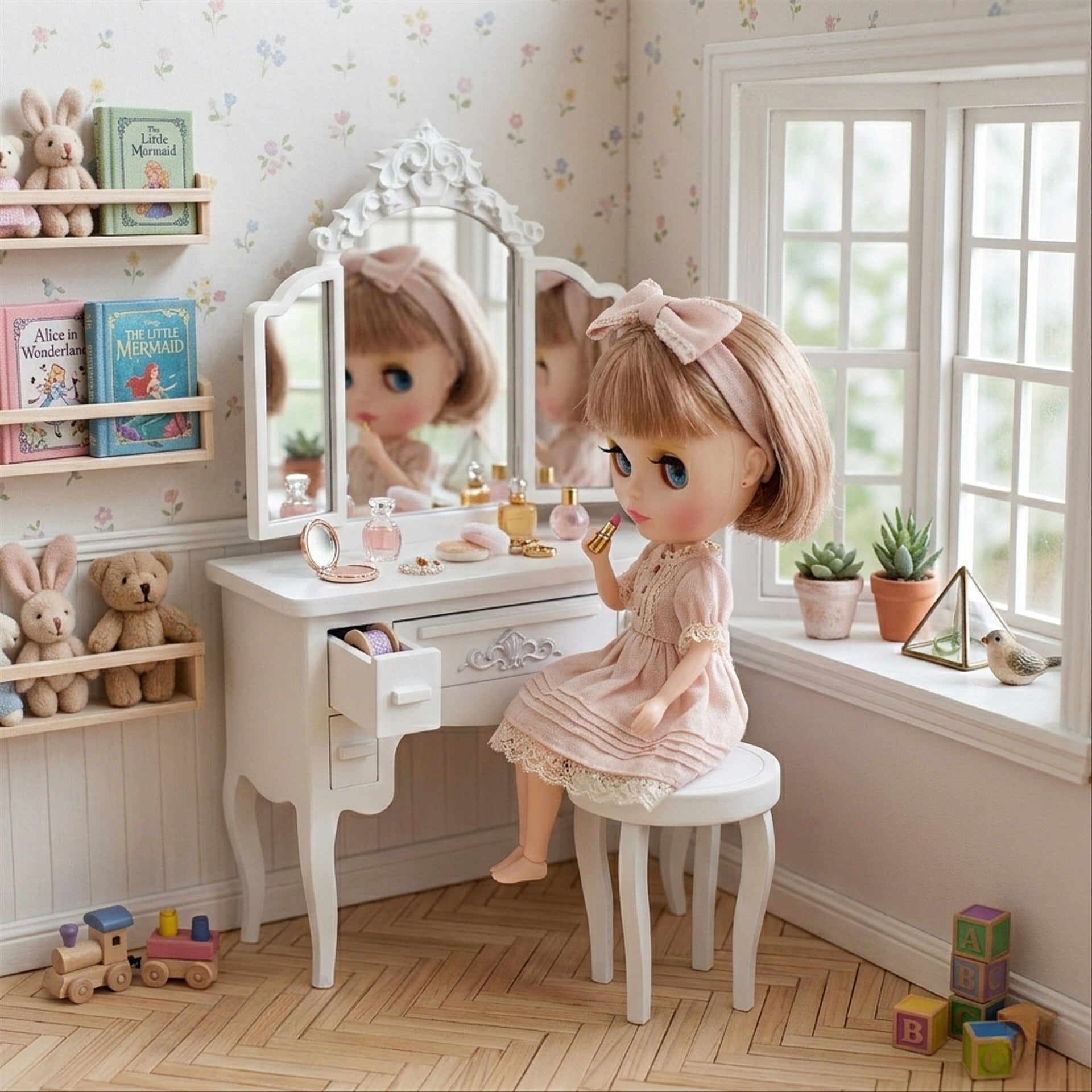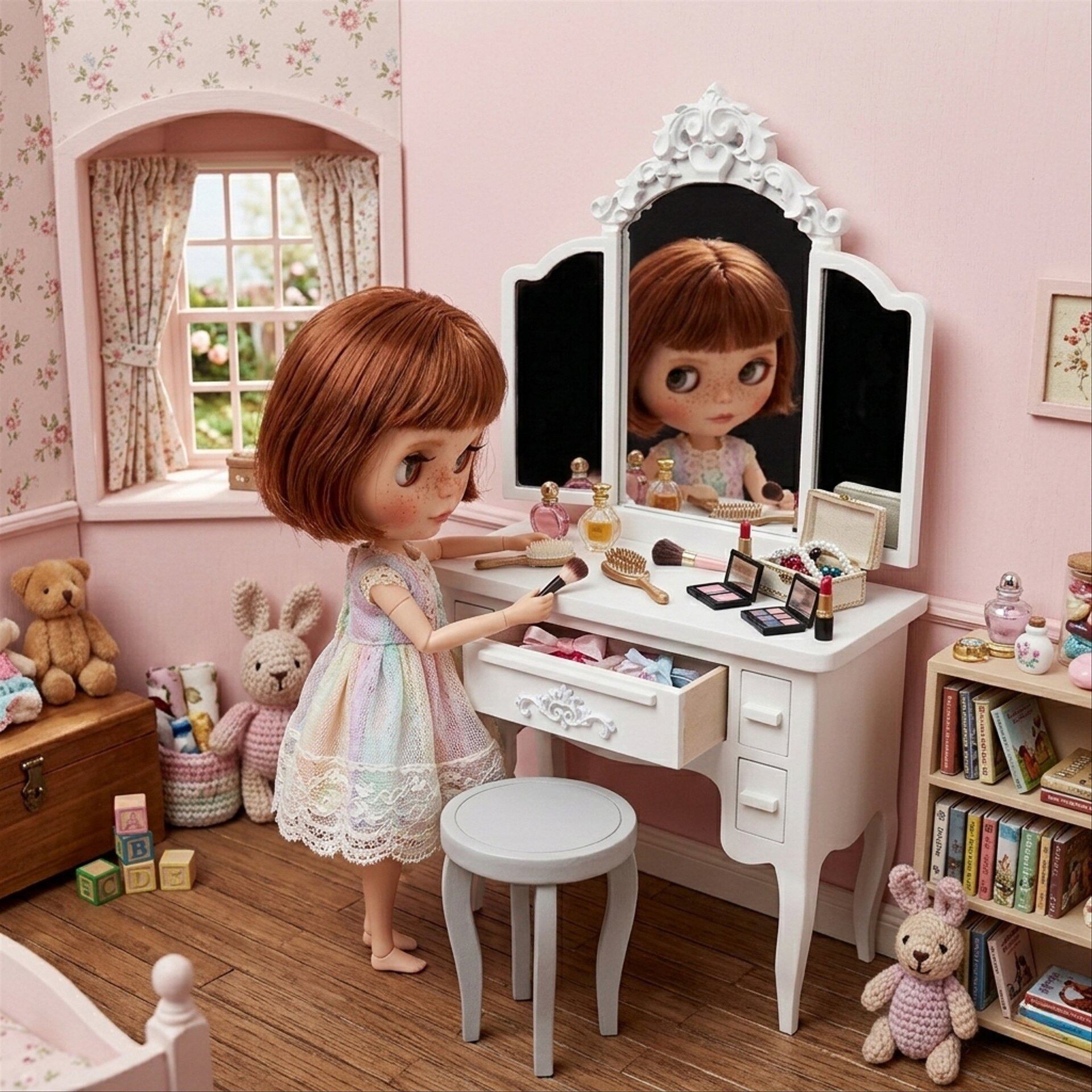 3面鏡ドレッサー ネオブライス リカちゃん 適応 家具 ホワイト 1/6 ドールハウス ミニチュア
