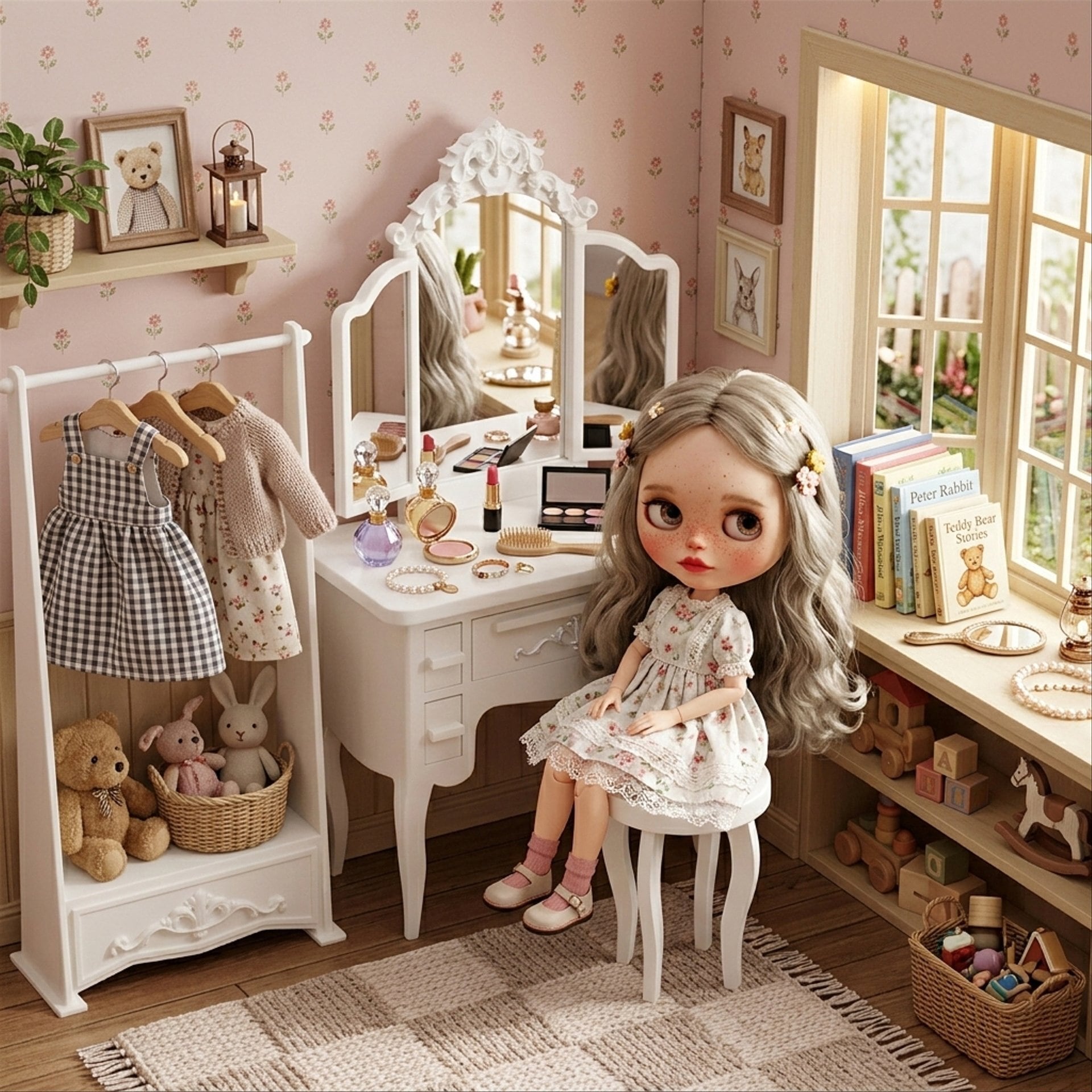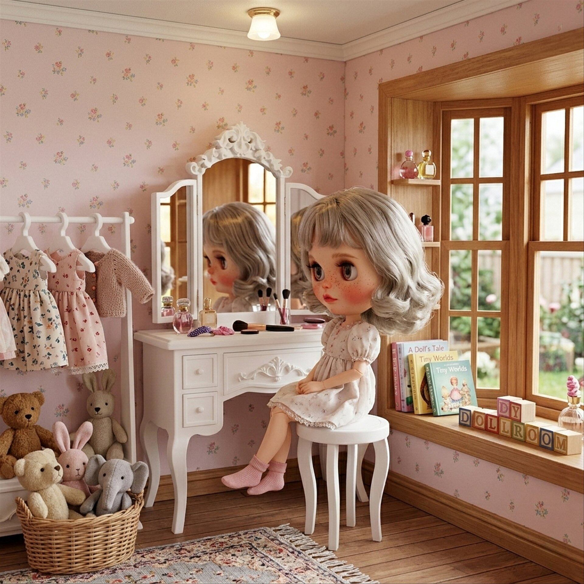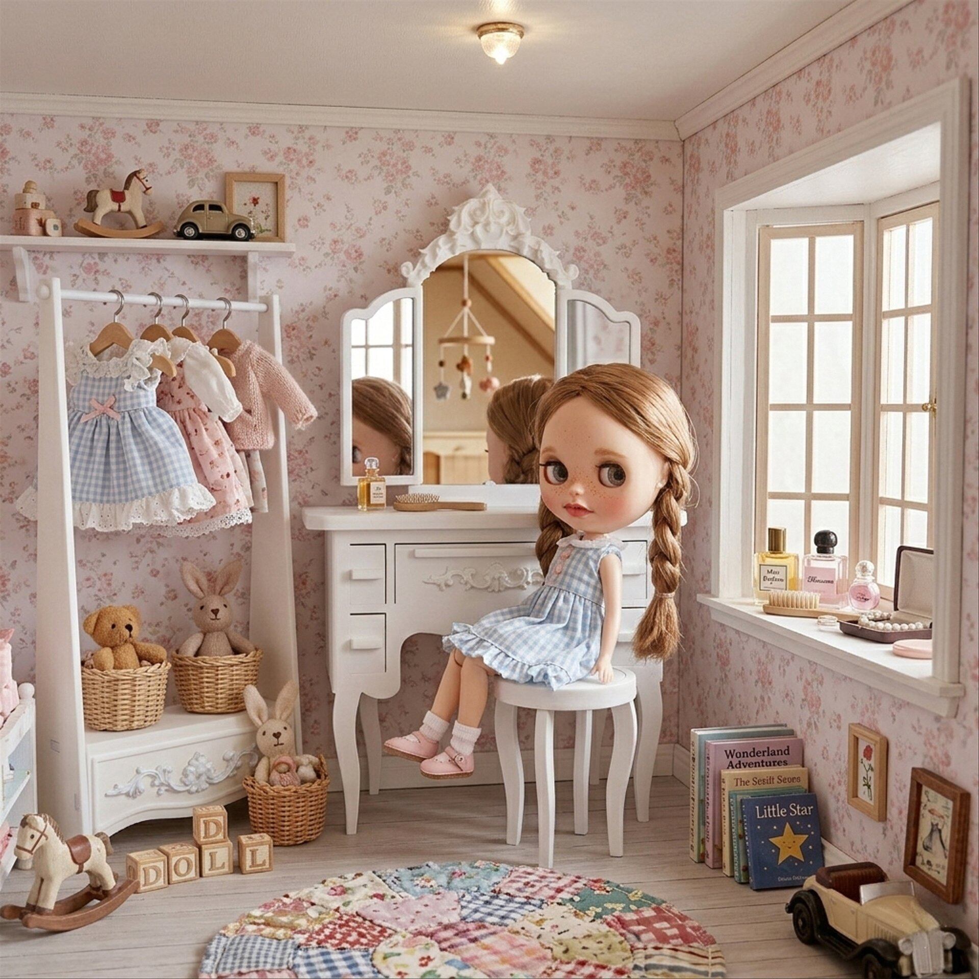 3面鏡ドレッサー ネオブライス リカちゃん 適応 家具 ホワイト 1/6 ドールハウス ミニチュア