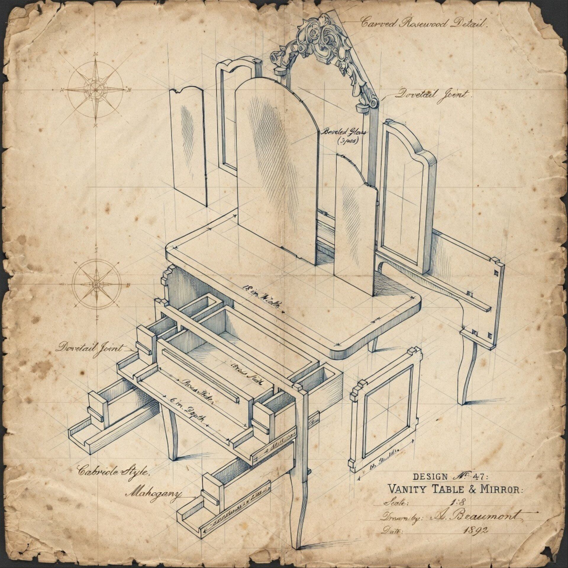 ミニチュア 3面鏡ドレッサー