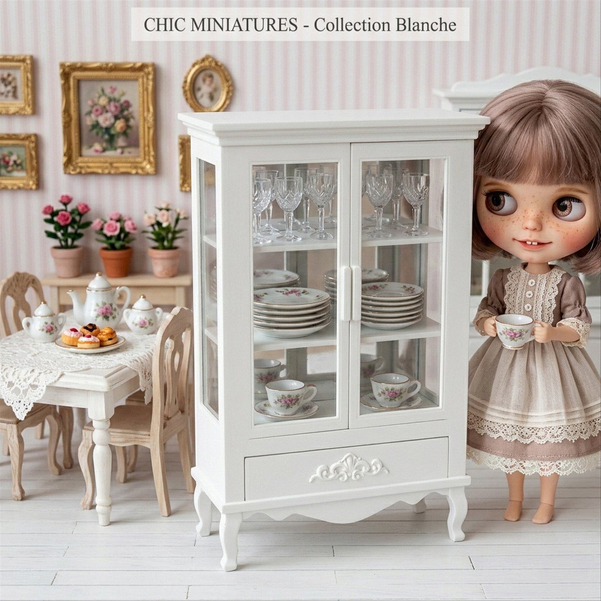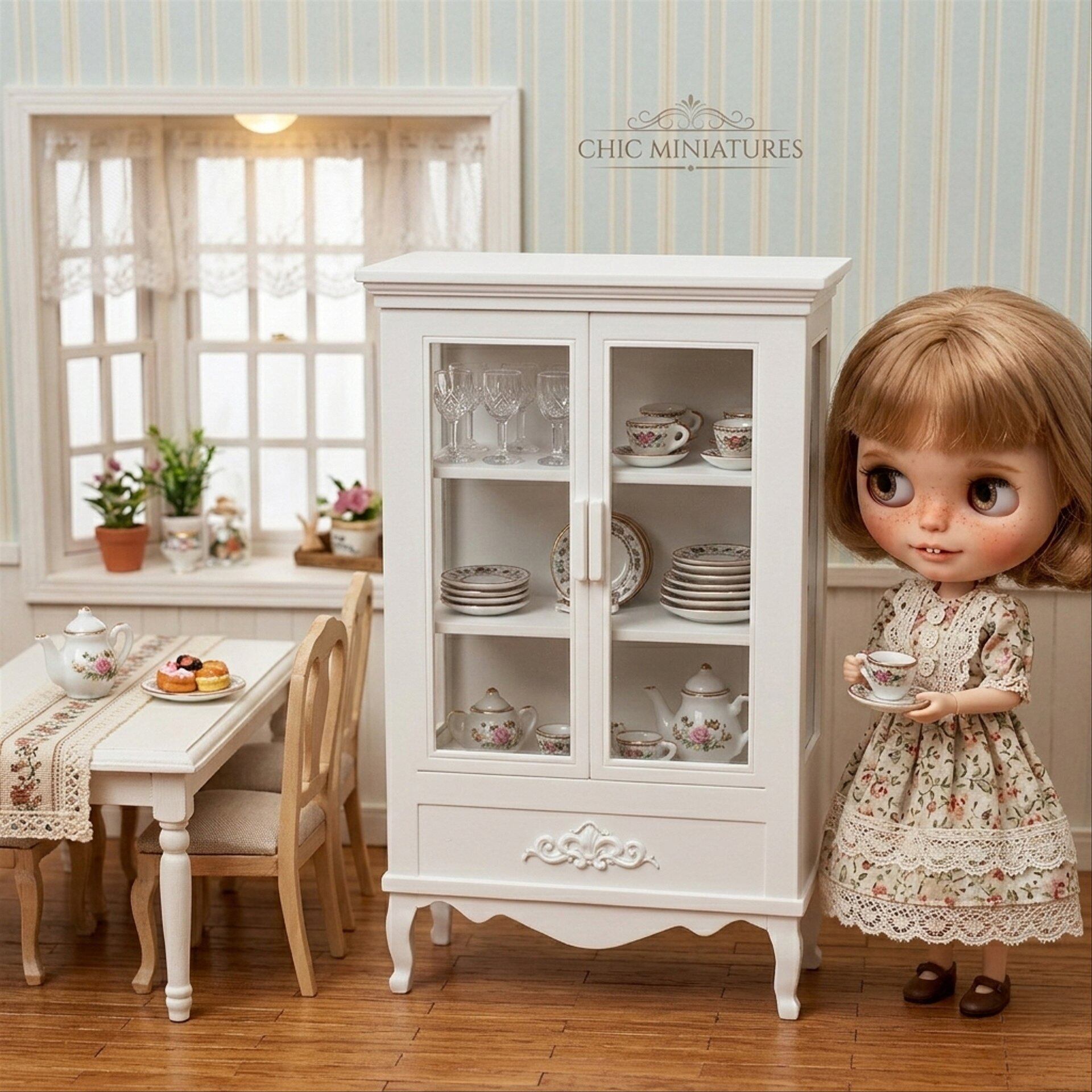 ガラスキャビネット 白 食器棚 ネオブライス リカちゃん 適応 家具 ホワイト 1/6 ドールハウス ミニチュア