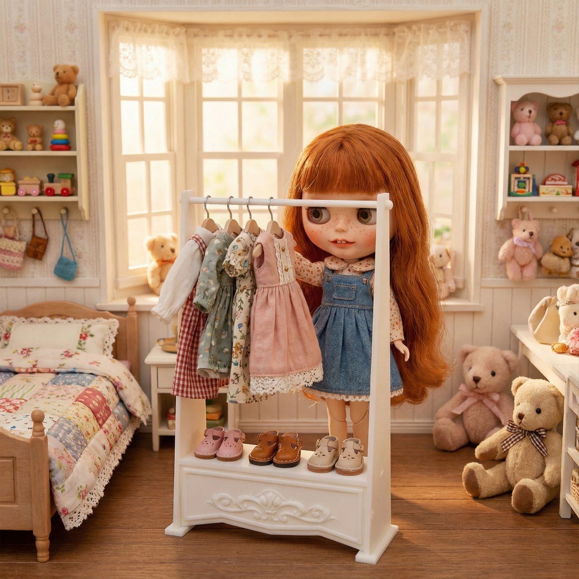 ハンガーラック ホワイト 1/6 ドールハウス ミニチュア 家具 アンティーク ドール