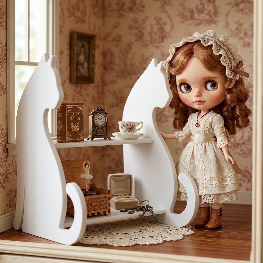 キャットシェルフ② ネコ 猫 キャット cat ラック 棚 飾り棚 ホワイト 1/6 ドールハウス ミニチュア 日本製 アンティーク 家具 ドール 人形 雑貨 miniature dollhouse