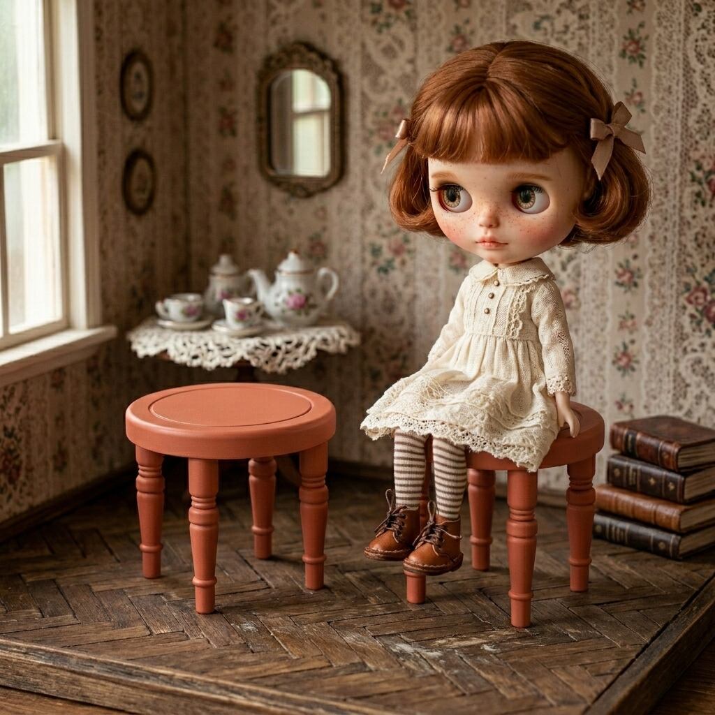 バニー&スツール 椅子 chair テラコッタ 1/6 ドールハウス ミニチュア ハンドメイド アンティーク 家具 ドール miniature dollhouse