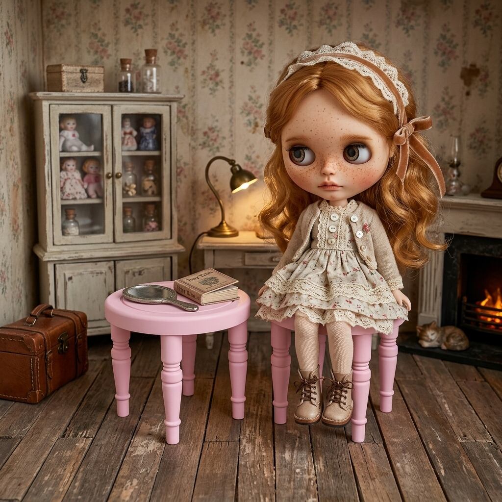 バニー&スツール 椅子 chair ピンク 1/6 ドールハウス ミニチュア ハンドメイド アンティーク 家具 ドール miniature dollhouse