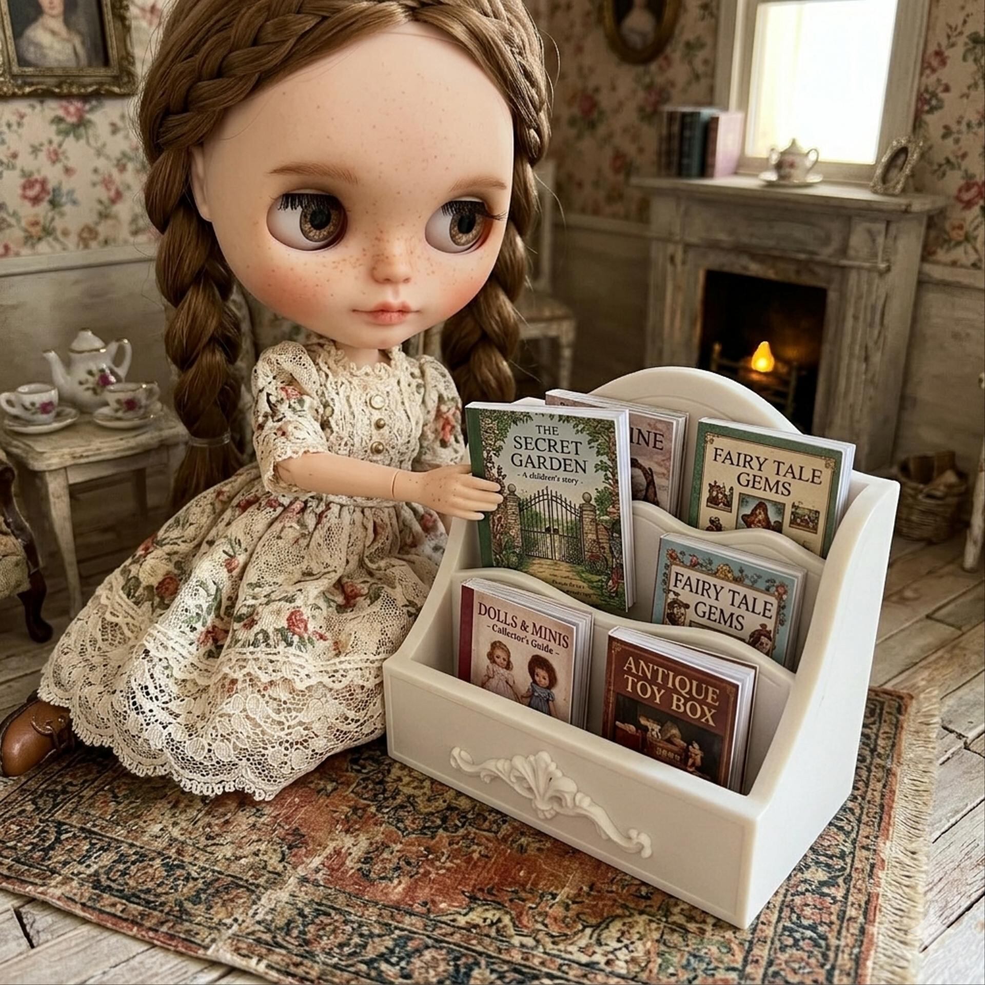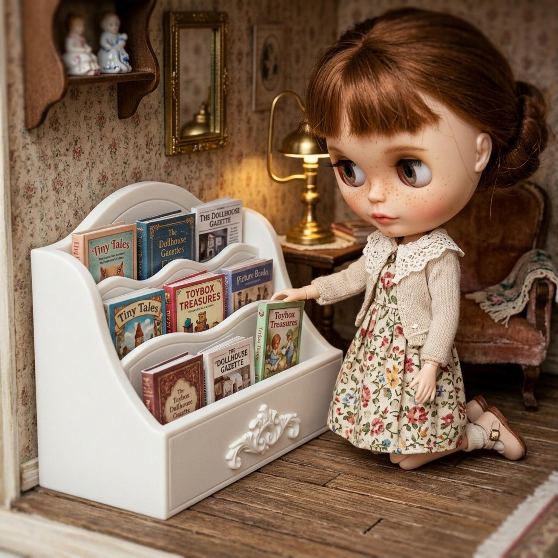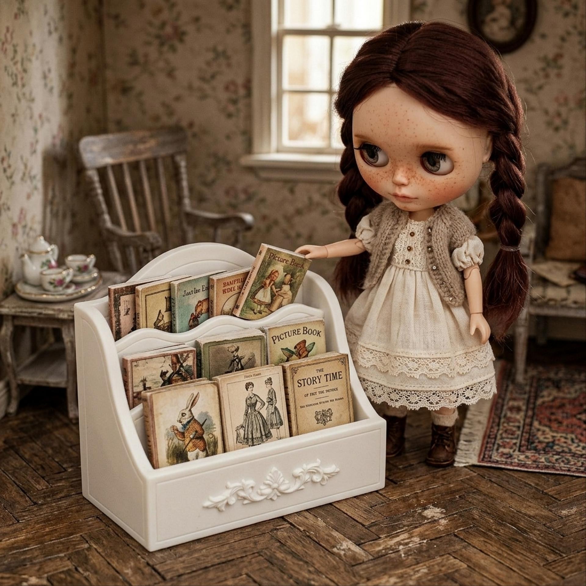 マガジンラック 本立て ブックスタンド 本棚 ホワイト 1/6 ドールハウス ミニチュア 日本製 アンティーク 家具 ドール 人形 雑貨 miniature