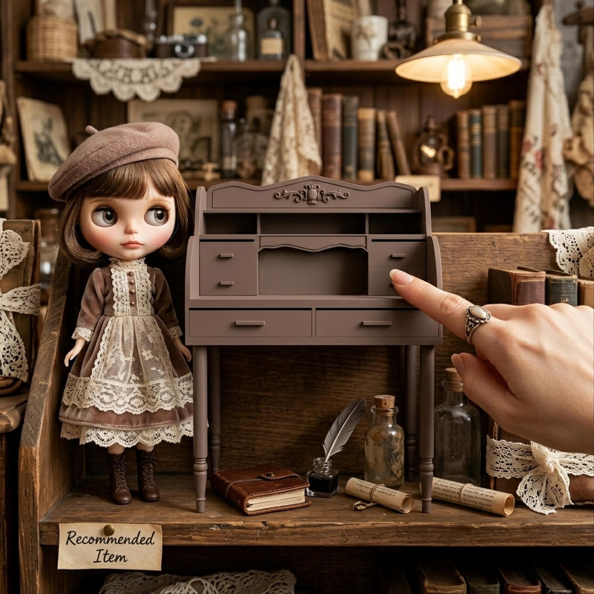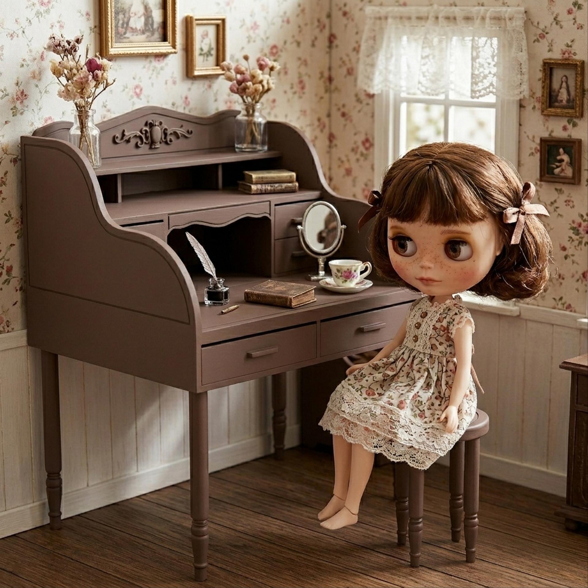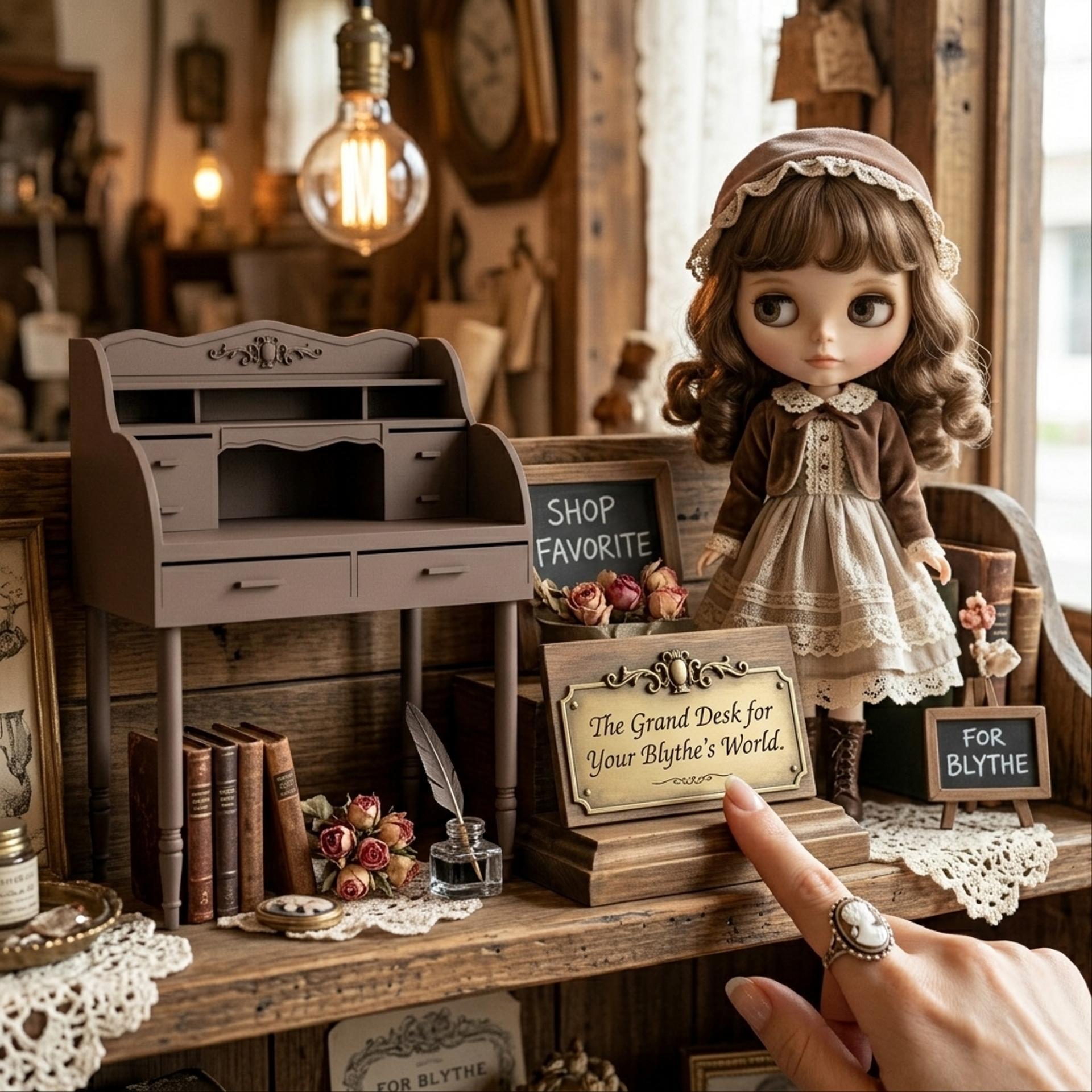 グランドデスク 机 ブラウン 1/6 ドールハウス ミニチュア ブライス 家具 アンティーク
