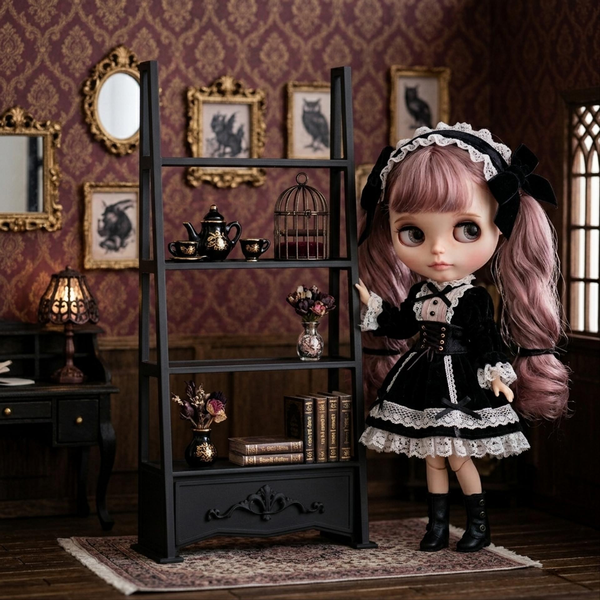 ラダーラック 本棚 キャビネット 棚 ラック 黒 ブラック ゴスロリ ネオブライス 適応 家具 1/6 ドールハウス ミニチュア