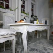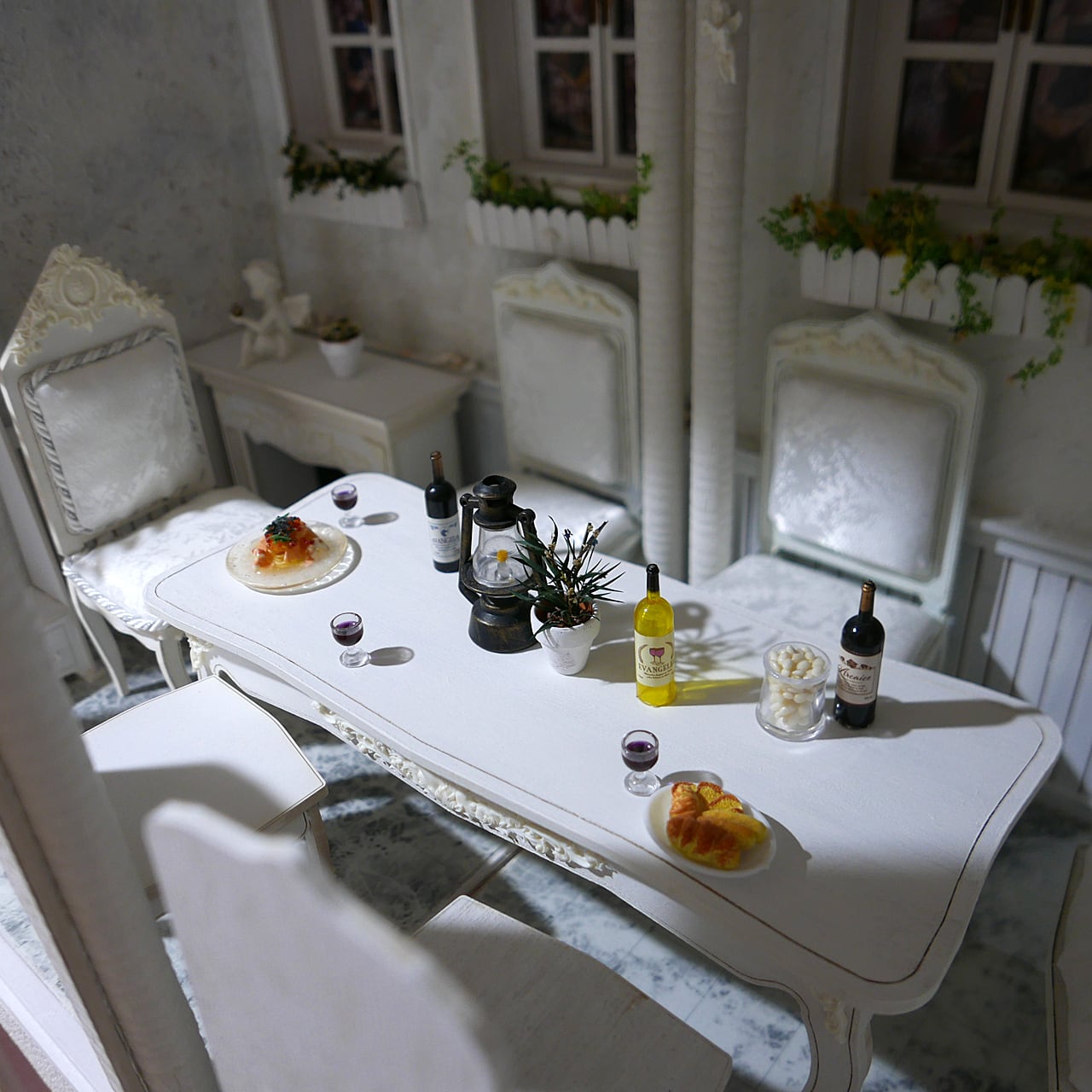 ダイニングテーブル 立体彫刻 No.2 ホワイト 1/6 ドールハウス ミニチュア ハンドメイド ブライス ネオブライス リカちゃん シルバニア アンティーク 木製 家具 ドール 人形 | 世界一小さな家具屋さん「ドールハウスの15世紀」