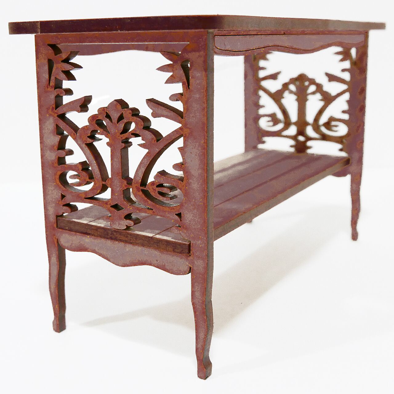ミニテーブル 切抜彫刻 No.2 ブラウン 1/6 ドールハウス ミニチュア ハンドメイド ブライス ネオブライス リカちゃん シルバニア アンティーク 木製 家具 ドール 人形
