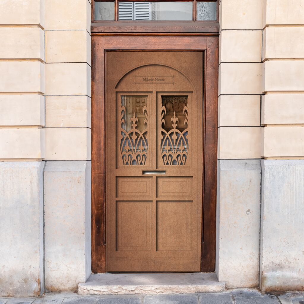 3DアンティークドアNo.13/Mサイズ/2重構造/ウォールナット色(1/6 ドールハウス ミニチュア ブライス リカちゃん)